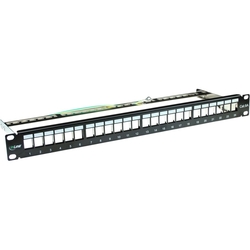 Patch panel Prázdny panel pre použitie so zasúvacími modulmi. Patch panel je možné vytiahnuť dopredu pre ľahšiu montáž modulov Keystone. pre max. 24 Keystone modulov 19" rám, výška: 1U Farba: svetlošedá RAL7035
