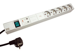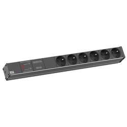 19" 1U zásuvková lišta v hliníkovom profile Vývody 8 x Francúzsko (UTE) S osvetleným vypínačom (červená) S ochra...