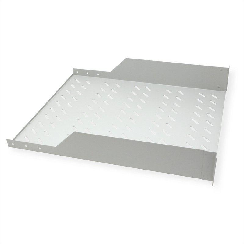 The shelves can be easily integrated into the front 19" profile rails of your 19" network or server enclosure. Thanks to the sturdy, perforated metal plate with a high load capacity, they provide an ideal storage surface for components that cannot normally be installed in a 19" rack.