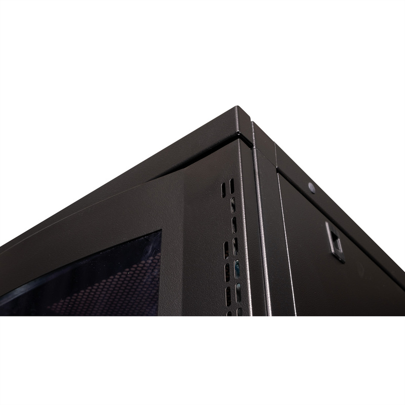 Serverové skrine série ROLINE Pro boli špeciálne vyvinuté pre pohodlné a flexibilné sieťové vedenie kabeláže. Vstupy s kefkami, nasúvací vstup s penovým gumovým tesnením a ďalší vstup s kefkou v základnom šasi sú umiestnené na bokoch strechy a základne (od šírky skrine 800 mm), čo ponúka širokú škálu možných aplikácií. Perforované jednokrídlové predné dvere a dvojkrídlové zadné dvere, každé s otočnou kľučkou a profilovým polcylindrickým ventilom, zabezpečujú lepšiu cirkuláciu vzduchu. Strecha má perforovaný kryt, ktorý umožňuje jednoduchú inštaláciu modulu ventilátora.