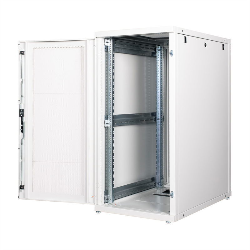 Serverové skrine série ROLINE Pro boli špeciálne vyvinuté pre pohodlné a flexibilné sieťové vedenie kabeláže. Vstupy s kefkami, nasúvací vstup s penovým gumovým tesnením a ďalší vstup s kefkou v základnom šasi sú umiestnené na bokoch strechy a základne (od šírky skrine 800 mm), čo ponúka širokú škálu možných aplikácií. Perforované jednokrídlové predné dvere a dvojkrídlové zadné dvere, každé s otočnou kľučkou a profilovým polcylindrickým ventilom, zabezpečujú lepšiu cirkuláciu vzduchu. Strecha má perforovaný kryt, ktorý umožňuje jednoduchú inštaláciu modulu ventilátora.