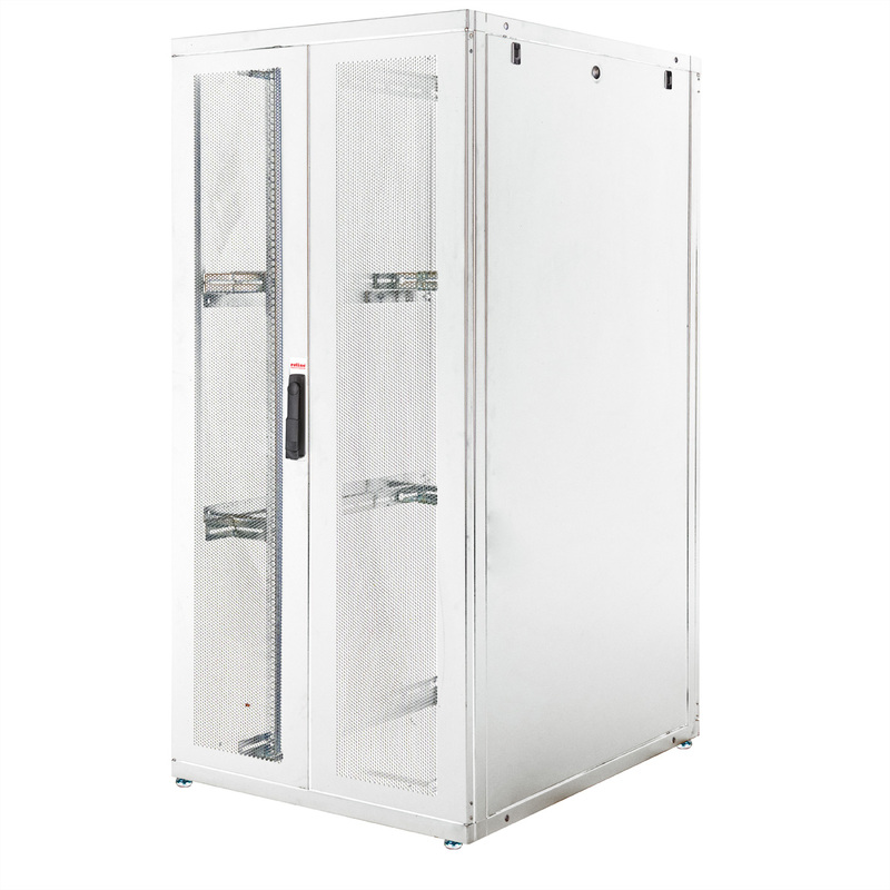 Serverové skrine série ROLINE Pro boli špeciálne vyvinuté pre pohodlné a flexibilné sieťové vedenie kabeláže. Vstupy s kefkami, nasúvací vstup s penovým gumovým tesnením a ďalší vstup s kefkou v základnom šasi sú umiestnené na bokoch strechy a základne (od šírky skrine 800 mm), čo ponúka širokú škálu možných aplikácií. Perforované jednokrídlové predné dvere a dvojkrídlové zadné dvere, každé s otočnou kľučkou a profilovým polcylindrickým ventilom, zabezpečujú lepšiu cirkuláciu vzduchu. Strecha má perforovaný kryt, ktorý umožňuje jednoduchú inštaláciu modulu ventilátora.