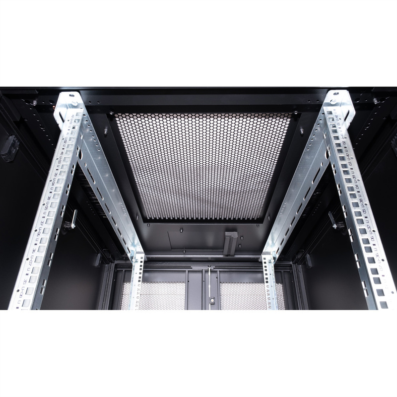 Serverové skrine série ROLINE Pro boli špeciálne vyvinuté pre pohodlné a flexibilné sieťové vedenie kabeláže. Vstupy s kefkami, nasúvací vstup s penovým gumovým tesnením a ďalší vstup s kefkou v základnom šasi sú umiestnené na bokoch strechy a základne (od šírky skrine 800 mm), čo ponúka širokú škálu možných aplikácií. Perforované jednokrídlové predné dvere a dvojkrídlové zadné dvere, každé s otočnou kľučkou a profilovým polcylindrickým ventilom, zabezpečujú lepšiu cirkuláciu vzduchu. Strecha má perforovaný kryt, ktorý umožňuje jednoduchú inštaláciu modulu ventilátora.
