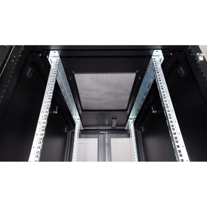 Serverové skrine série ROLINE Pro boli špeciálne vyvinuté pre pohodlné a flexibilné sieťové vedenie kabeláže. Vstupy s kefkami, nasúvací vstup s penovým gumovým tesnením a ďalší vstup s kefkou v základnom šasi sú umiestnené na bokoch strechy a základne (od šírky skrine 800 mm), čo ponúka širokú škálu možných aplikácií. Perforované jednokrídlové predné dvere a dvojkrídlové zadné dvere, každé s otočnou kľučkou a profilovým polcylindrickým ventilom, zabezpečujú lepšiu cirkuláciu vzduchu. Strecha má perforovaný kryt, ktorý umožňuje jednoduchú inštaláciu modulu ventilátora.