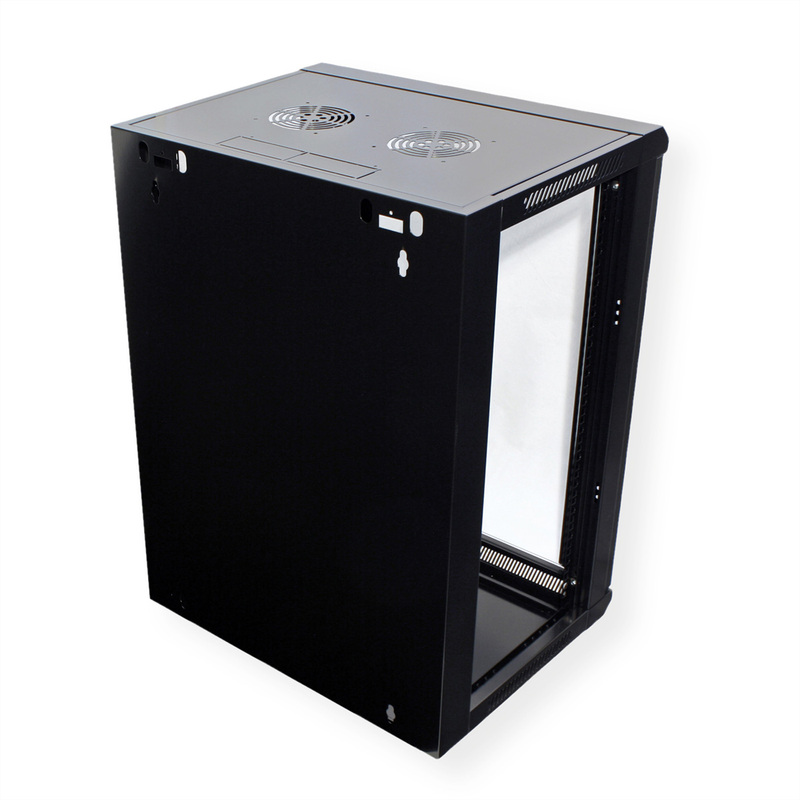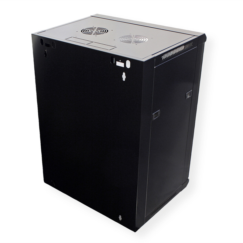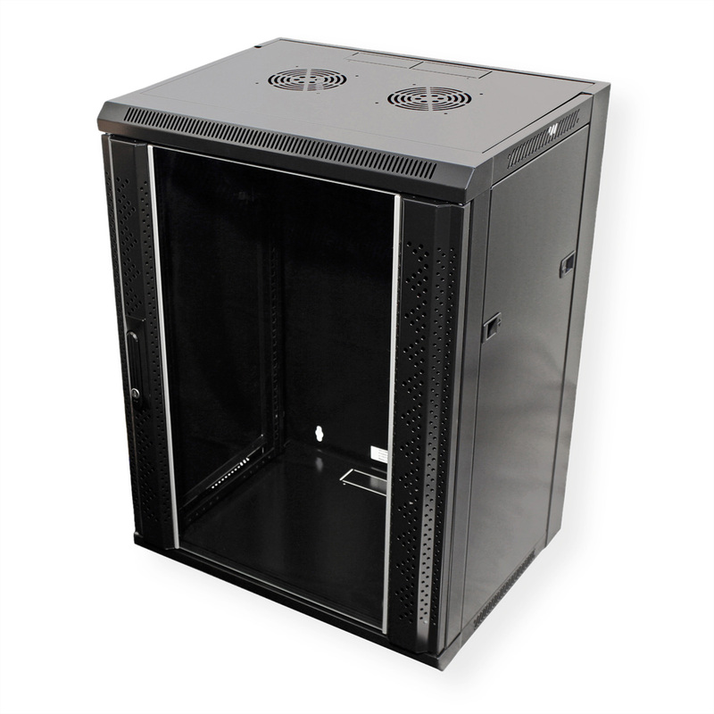 19" Rack na stenu 15U, čierny, 775x570x600 mm (HxWxD), odnímateľné bočnice