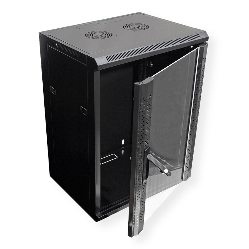 For small network installations, even a half-height network cabinet is often too big, especially since only a parking space has to be found. In such cases, wall enclosures are the better solution. They provide enough space for some switches and patch panels and do not require space on the floor due to wall mounting. In addition, the network administrator can easily read the status of the switches without compromising their knees, or patch a patch cable without slipping on the ground.