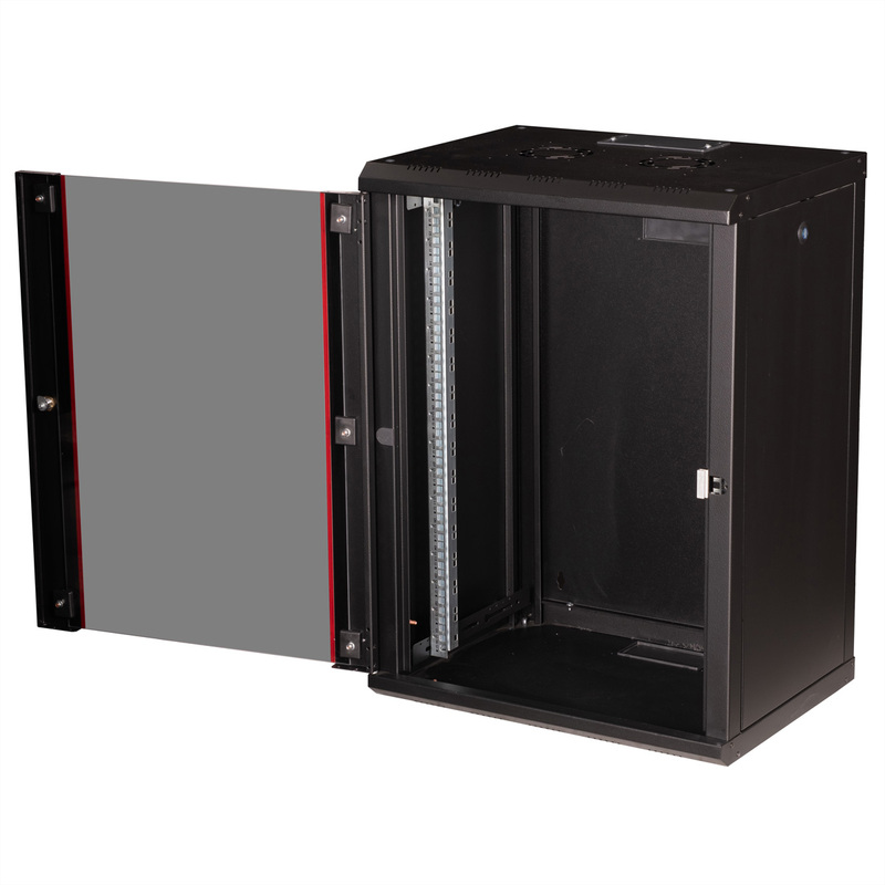 19" Rack na stenu 16U, čierny, 818x600x450mm (HxWxD), RAL9005, PRO, odnímateľné bočnice