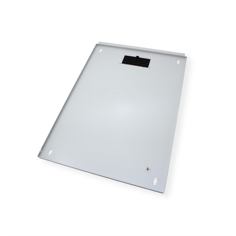 The wall-mounted enclosures in the ROLINE Pro series have been specially designed for flexible network cabling. Each enclosure has a slide-on cable inlet in the roof with a foam rubber seal. The rear panel and the base plate are equipped with punched cable inlets and plastic covers. The roof chassis has a punched-out area to accommodate a fan module. Inside, two pairs of galvanised profile rails with height units of 483 mm (19") are installed, which are also adjustable in depth. The robust steel constructions of the cabinets are made of up to 1.5 mm thick sheet steel and are available powder-coated in grey (RAL 7035) or black (RAL 9005). The side panels and front door are modular, lockable and removable, which improves accessibility. Wall mounting is carried out in two simple steps: Firstly, the rear panel is screwed to the wall and then connected to the housing. Optional levelling feet or castors can be used to make the enclosures free-standing.