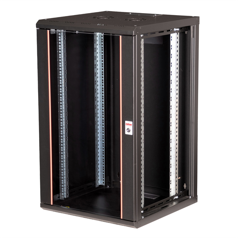 Nástenné rozvádzače série ROLINE Pro boli špeciálne navrhnuté pre flexibilné sieťové káble. Každý rozvádzač má v streche nasuvný káblový vstup s penovým gumovým tesnením. Zadný panel a základná doska sú vybavené perforovanými káblovými vstupmi a plastovými krytmi. Strešný rám má perforovaný priestor na umiestnenie ventilátorového modulu. Vo vnútri sú nainštalované dva páry pozinkovaných profilových líšt s výškovými jednotkami 483 mm (19"), ktoré sú tiež hĺbkovo nastaviteľné. Robustné oceľové konštrukcie rozvádzačov sú vyrobené z oceľového plechu s hrúbkou až 1,5 mm a sú dostupné s práškovým nástrekom v sivej (RAL 7035) alebo čiernej (RAL 9005) farbe. Bočné panely a predné dvere sú modulárne, uzamykateľné a odnímateľné, čo zlepšuje prístupnosť. Montáž na stenu sa vykonáva v dvoch jednoduchých krokoch: Najprv sa zadný panel priskrutkuje k stene a potom sa spojí s krytom. Na voľné postavenie rozvádzačov je možné použiť voliteľné vyrovnávacie nožičky alebo kolieska.