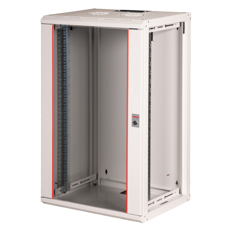 Nástenné rozvádzače série ROLINE Pro boli špeciálne navrhnuté pre flexibilné sieťové káble. Každý rozvádzač má v streche nasuvný káblový vstup s penovým gumovým tesnením. Zadný panel a základná doska sú vybavené perforovanými káblovými vstupmi a plastovými krytmi. Strešný rám má perforovaný priestor na umiestnenie ventilátorového modulu. Vo vnútri sú nainštalované dva páry pozinkovaných profilových líšt s výškovými jednotkami 483 mm (19"), ktoré sú tiež hĺbkovo nastaviteľné. Robustné oceľové konštrukcie rozvádzačov sú vyrobené z oceľového plechu s hrúbkou až 1,5 mm a sú dostupné s práškovým nástrekom v sivej (RAL 7035) alebo čiernej (RAL 9005) farbe. Bočné panely a predné dvere sú modulárne, uzamykateľné a odnímateľné, čo zlepšuje prístupnosť. Montáž na stenu sa vykonáva v dvoch jednoduchých krokoch: Najprv sa zadný panel priskrutkuje k stene a potom sa spojí s krytom. Na voľné postavenie rozvádzačov je možné použiť voliteľné vyrovnávacie nožičky alebo kolieska.