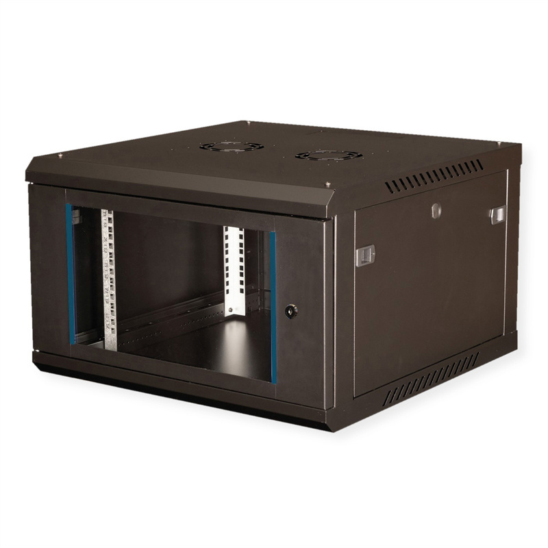 19" Rack na stenu 6U, čierny, 379x600x600 mm (HxWxD), odnímateľné bočnice