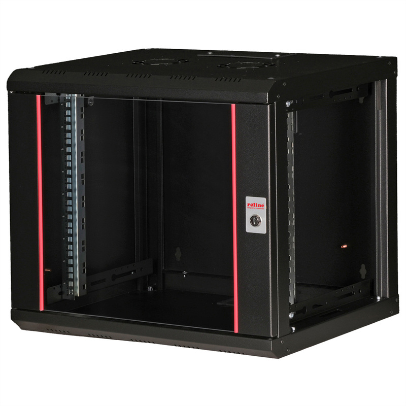 Nástenné rozvádzače série ROLINE Pro boli špeciálne navrhnuté pre flexibilné sieťové káble. Každý rozvádzač má v streche nasuvný káblový vstup s penovým gumovým tesnením. Zadný panel a základná doska sú vybavené perforovanými káblovými vstupmi a plastovými krytmi. Strešný rám má perforovaný priestor na umiestnenie ventilátorového modulu. Vo vnútri sú nainštalované dva páry pozinkovaných profilových líšt s výškovými jednotkami 483 mm (19"), ktoré sú tiež hĺbkovo nastaviteľné. Robustné oceľové konštrukcie rozvádzačov sú vyrobené z oceľového plechu s hrúbkou až 1,5 mm a sú dostupné s práškovým nástrekom v sivej (RAL 7035) alebo čiernej (RAL 9005) farbe. Bočné panely a predné dvere sú modulárne, uzamykateľné a odnímateľné, čo zlepšuje prístupnosť. Montáž na stenu sa vykonáva v dvoch jednoduchých krokoch: Najprv sa zadný panel priskrutkuje k stene a potom sa spojí s krytom. Na voľné postavenie rozvádzačov je možné použiť voliteľné vyrovnávacie nožičky alebo kolieska.