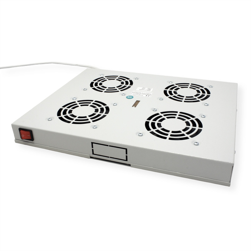 ROLINE 19 inch fan unit 4 fans thermostat grey