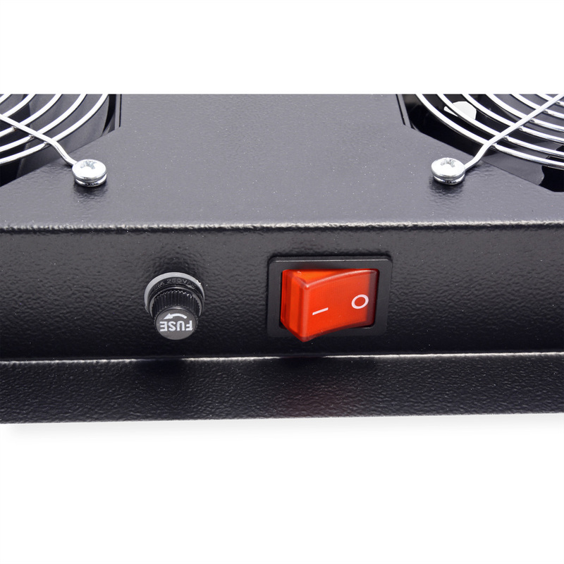 The roof fan units can be used flexibly in any 19" enclosure. Each fan unit is supplied with two sets of mounting brackets. With the standard set, you can attach the fan unit to any height unit of your network or server enclosure. The second set enables installation in the roof of 19" network or server cabinets from the ROLINE Pro and Basic series. A switch and an adjustable thermostat offer optimum customisation options. The model is available in the standard colours grey (RAL 7035) and black (RAL 9005).