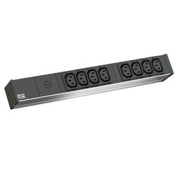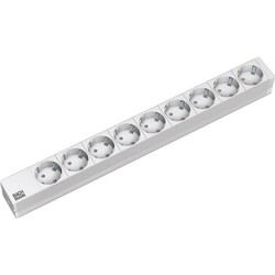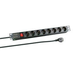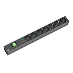 19" socket strip with 8x German Type connection and C14 supply cable, 10A fused, 1U, for installation in 19" cabinets, incl. mounting brackets.