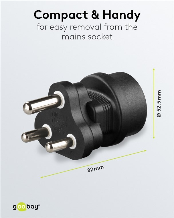 - Ideálny ako cestovný adaptér v mnohých krajinách sveta, napr. v Lesothe, Svazijsku, Namíbii, Indii, Srí Lanke a Nepále.