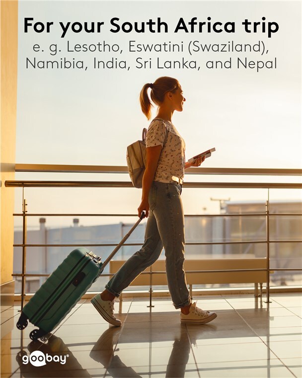 - Ideal as travel adapter in many countries worldwide, e.g. in Lesotho, Eswatini (Swaziland), Namibia, India, Sri Lanka and Nepal