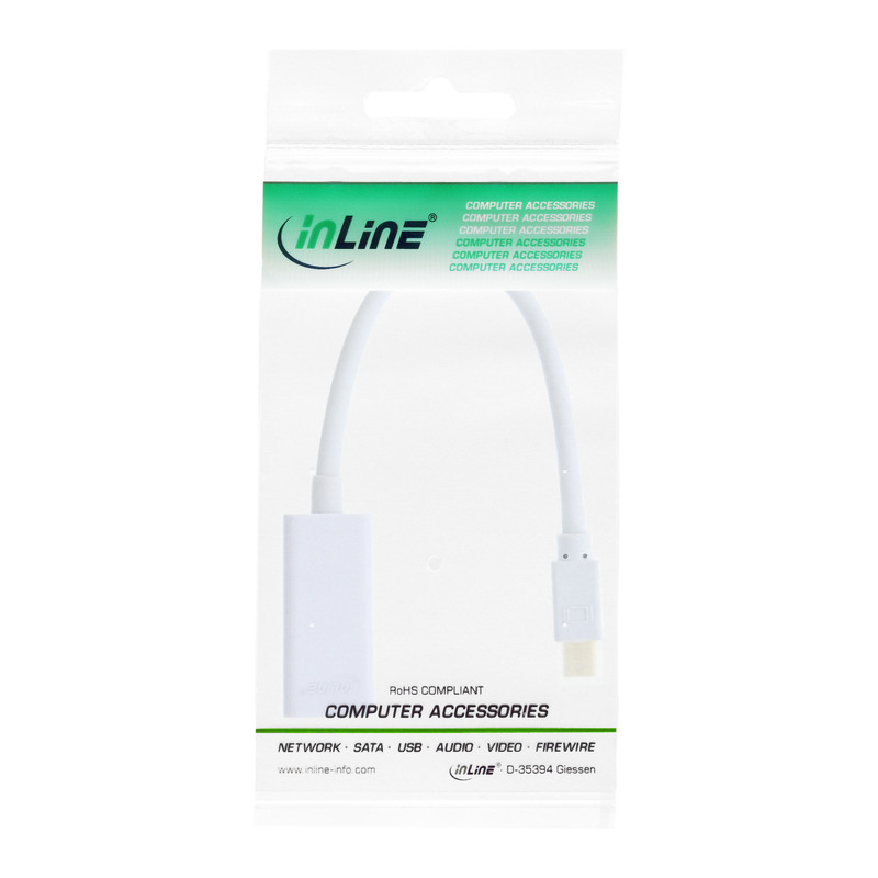 This converter cable is used to connect devices such as a monitor or projector with HDMI connection to a Mini DisplayPort interface.