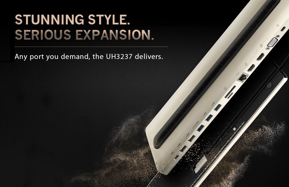 Expansion can be stylish now. The UH3237 is an elegant masterpiece, exquisitely crafted from solid aluminum with a gold-and-black premium design. Slim, stylish, and powerful – all forged into one.