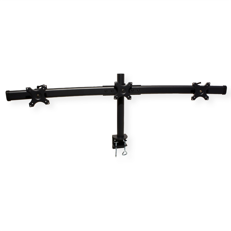 Držiak pre 3x monitor na stôl, úchyt o dosku, max 8kg, rameno 645mm, VESA 75/100, čierny