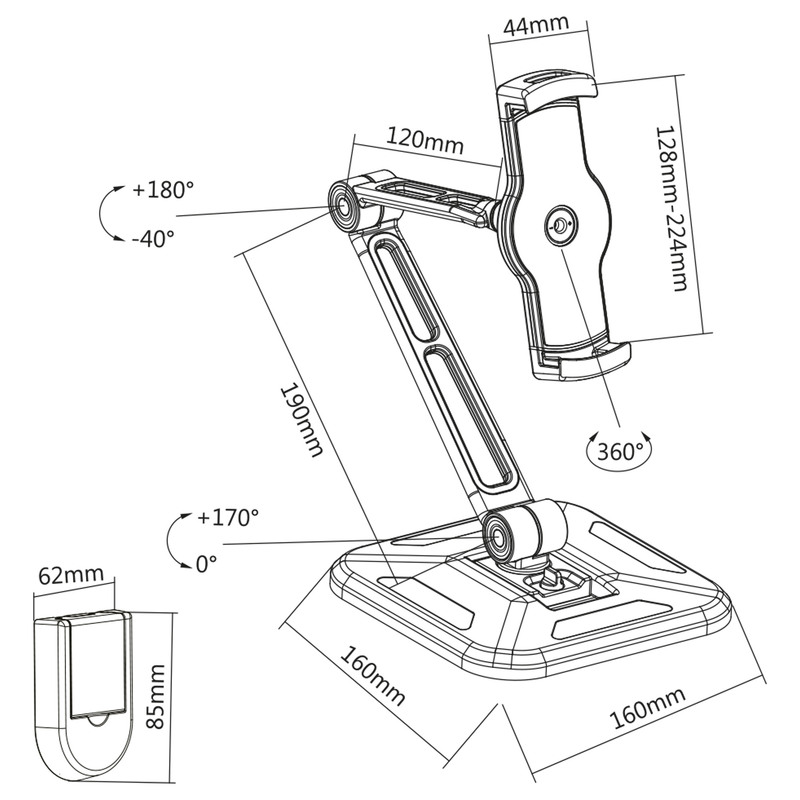 - Width 128mm-224mm adjustable holder fits different device sizes