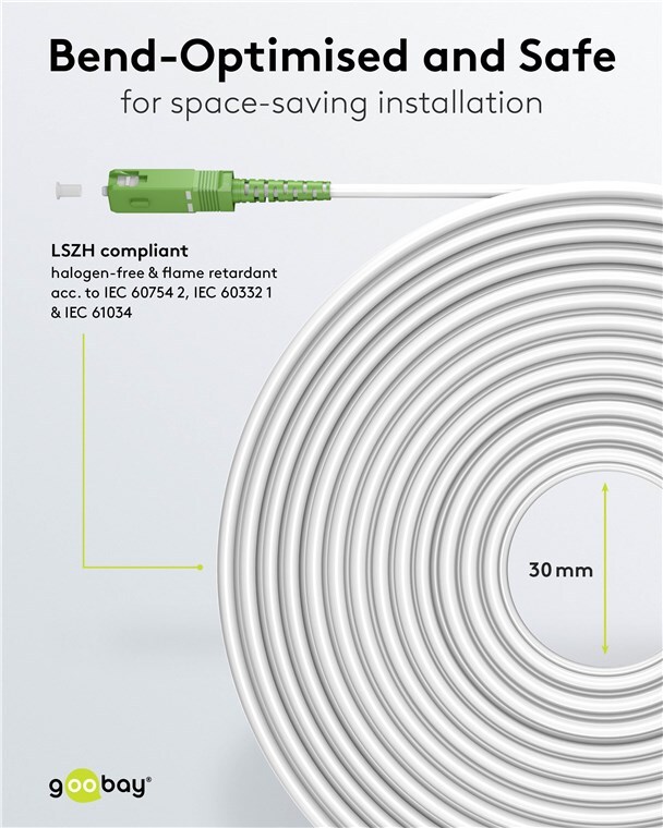 Prepojovací kábel je vhodný pre súkromné a priemyselné aplikácie vrátane optických vlákien do domácnosti (FTTH) a je kompatibilný s možnosťami FTTH širokej škály telekomunikačných poskytovateľov. Vďaka optimalizovanému polomeru ohybu kábla z optických vlákien je možná inštalácia, ktorá šetrí miesto bez zvýšenia útlmu a rizika rušenia.