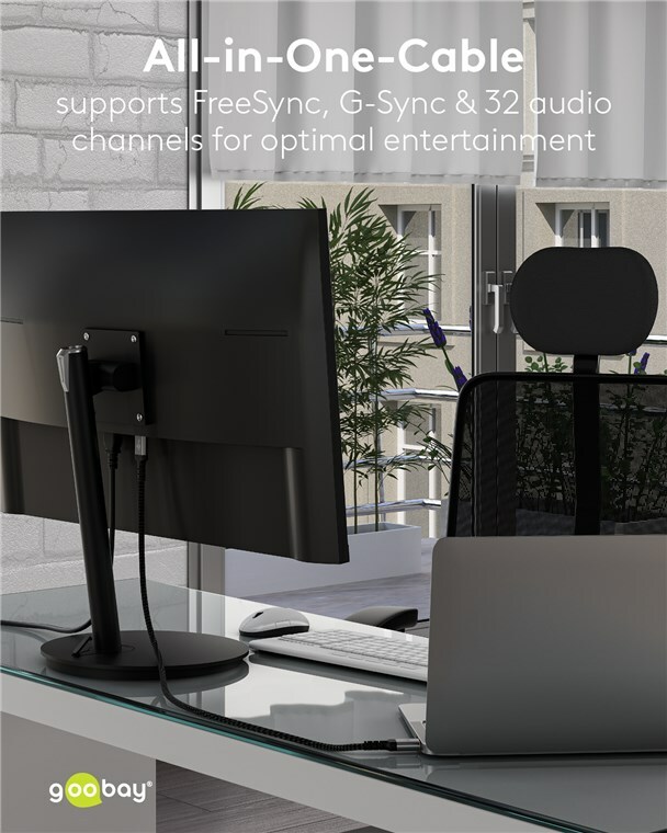 - The cable supports FreeSync and G-Sync, HDCP 2.2, Dynamic HDR as well as 32 audio channels and many popular audio formats, e.g. DTS-HD Master Audio
