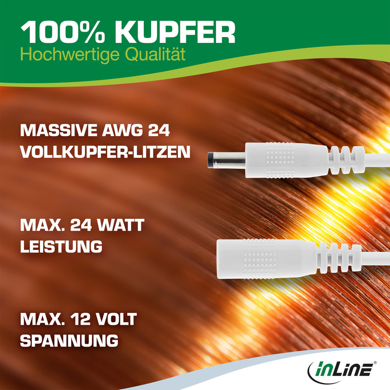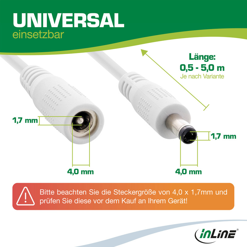 Predlžovací kábel DC InLine® Vnútorný vodič: meď AWG 24 DC zástrčka/zásuvka: 4,0 x 1,7 mm..... celý popis