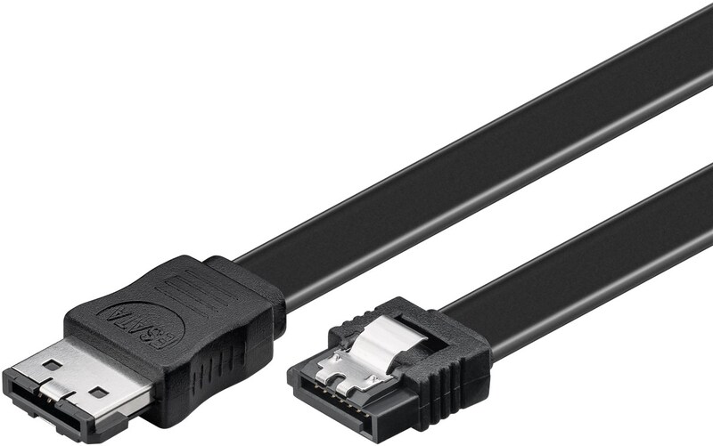 - Flat data cable with eSATA connector and SATA connector for connecting external SATA hard disks to the PC housing