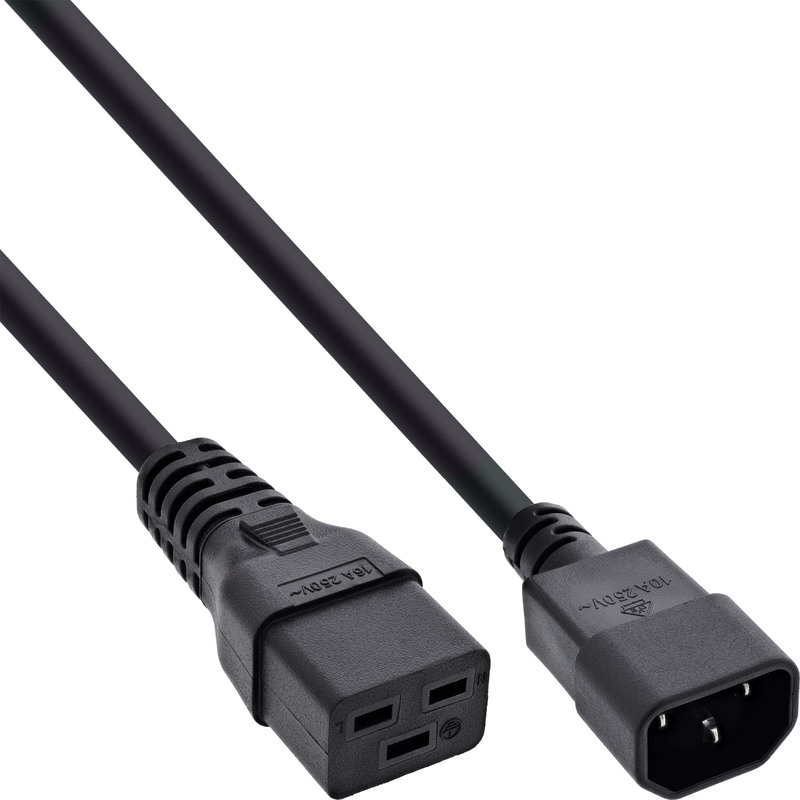 IEC 60320 C14 to C19 power adapter cable for reliable power connections up to 10 A