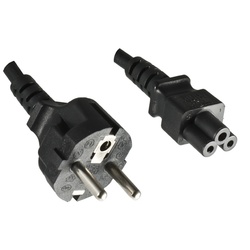 ROLINE power cable with safety plug 90° angled (CEE 7/7 German plug) and 3-pin notebook plug (Compaq plug IEC 320-C5) for connecting notebooks, etc.