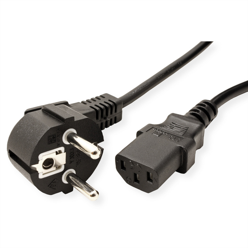 Cable with safety plug (German type) 90° angled and IEC 320-C13- Plugs: Safety plug to C13 plug