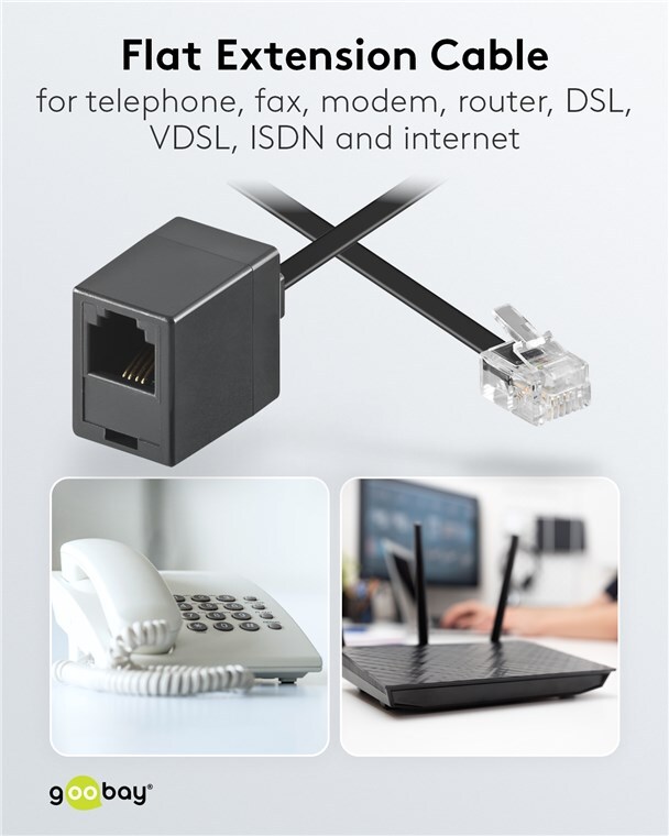 - Telephone extension cable can be universally used for e.g telephone, fax, modem, router, DSL, VDSL, ISDN and internet.