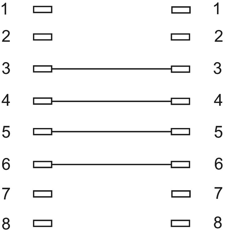 - Standardised RJ45 connectors with 1:1 assignment (8P4C plugs)