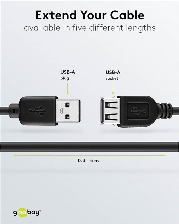 Kábel USB 2.0 A-A M/F 5m, High Speed, predlžovací, čierny