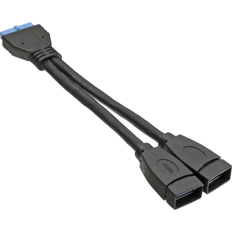 USB 3.0 adapter cable, 2x USB A female to 19pin mainboard connector, to connect 2 external USB 3.0 devices.