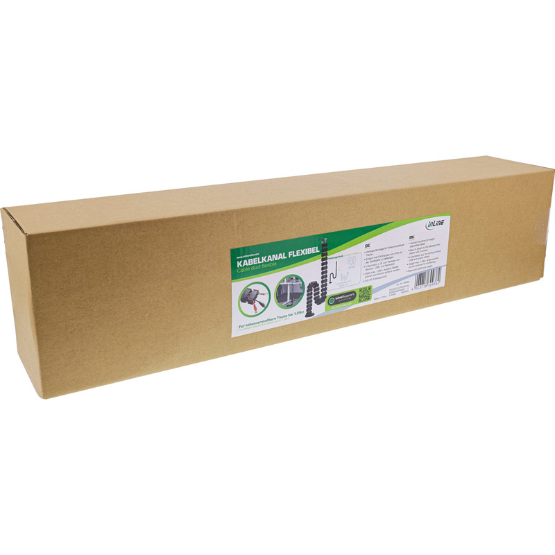 Keep your workplace tidier with the flexible InLine cable channel for height-adjustable desks. This well-designed system offers four separate compartments for targeted cable routing of monitor, power, and USB cables. The cable routing runs vertically from the table to the power outlet and adapts perfectly to any table height thanks to its modular links.