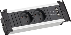 KAPSA S power strip 2xUTE sockets France 1xUSB double charger 5V DC / 3.1A supply cable: 2.0m H05VV-F 3G1.5mm² black with enclosed protective contact assembly plug, optional accessories: 1x cover packed in a box.