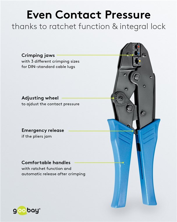 - The adjusting wheel sets the ideal pressure for precisely attaching crimp connectors, wire-end ferrules, cable lugs and butt connectors with heat shrink tubing