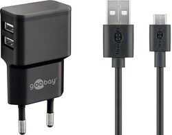 - The Goobay charging set consists of 1x dual USB charger and 1.0 m long Apple Lightning cable.