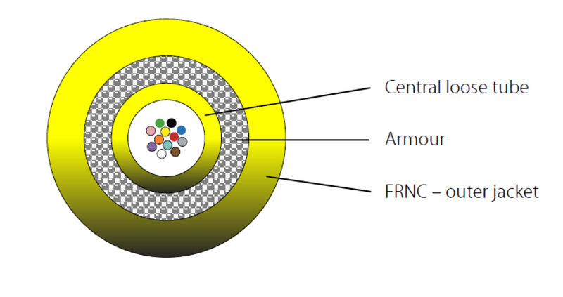 Optický kábel I-B(ZN)BH 12G (1x12), OS2 9/125µ, G657A1, 1500N, LSOH, B2ca, armored, žltý