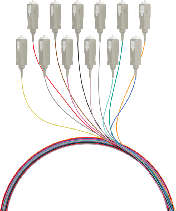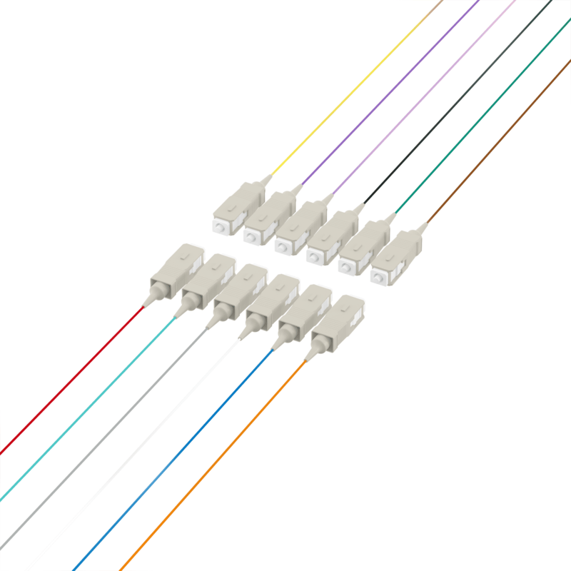 Sada pigtailov z optických vlákien SC sa skladá z 12 pigtailov. 12 pigtailov je sfarbených podľa farebného kódu DIN VDE 0888: červená, zelená, modrá, žltá, biela, sivá, hnedá, fialová, tyrkysová, čierna, oranžová a ružová. Farba plášťa 900 zodpovedá farbe plášťa 250. Všetkých 12 pigtailov je balených v polyetylénovom vrecku. Každý konektor je balený samostatne pre jednoduché odstránenie každého pigtailu. Každé balenie obsahuje individuálny merací protokol.