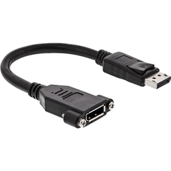 Adaptér DisplayPort 1.4 M/F, 4K8K, 15cm čierny, zahnutý konektor 90° dolava