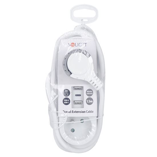 Predlžovačka 1.5m s 2 zásuvkami, 1.00mm², USB nabíjačka (2x USB A + 1x USB C) 17W, biela