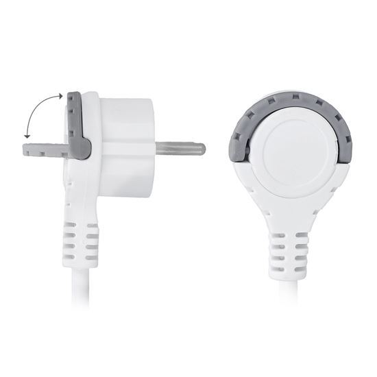 - uhlová vidlica s nízkym profilom od steny, sklopný úchyt pre ľahké vytiahnutie zo zásuvky