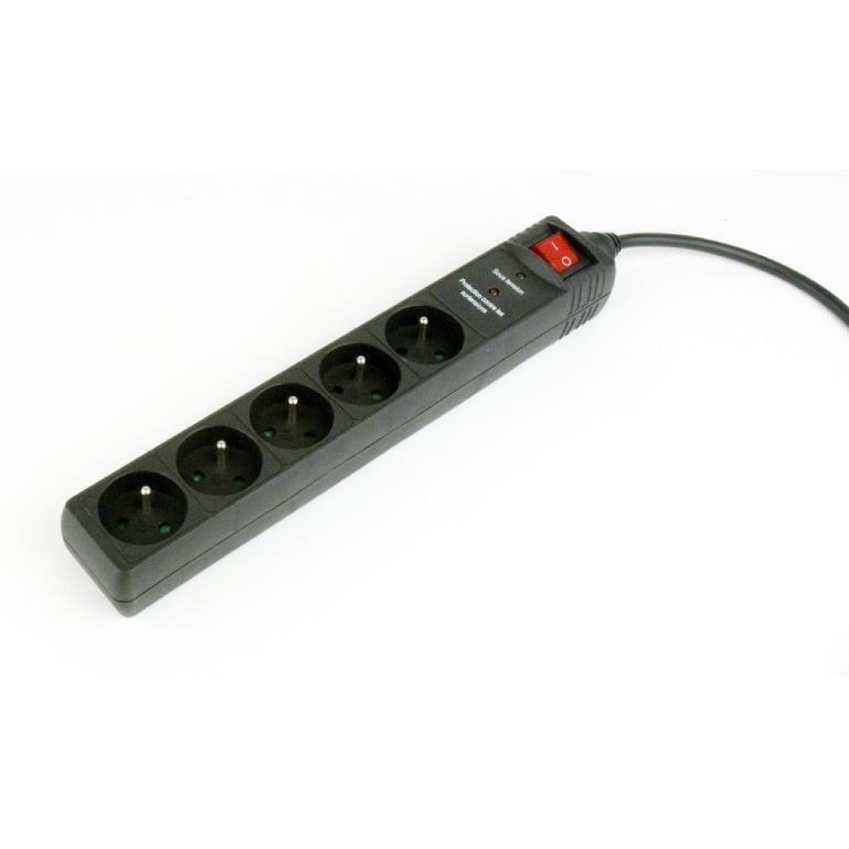 Prepäťová ochrana pre kanceláriu a domácnosť so vstupným napätím max. 250 V, 5 zásuviek 220V. Nehorľavé púzdro, zásuvky s detskou ochranou, vypínač. Maximálne celkové zaťaženie: 250 V AC, až 16 A, (50 - 60 Hz), Maximálne prepäťové napätie 6000 V, maximálny špičkový prúd 9000 A, energia 250 Joulou, Zásuvky: 5 X francúzskeho typu (kompatibilný s nemeckým typom Schuko), Nemecká (Schuko) zástrčka 16 A 1,5 mm2 napájací kábel, 1,5 m, Rozmery: 330 mm x 56 mm x 45 mm, Teplotný rozsah: (-5 ... + 40) ° C, Čistá hmotnosť: 0,45 kg, detská ochrana