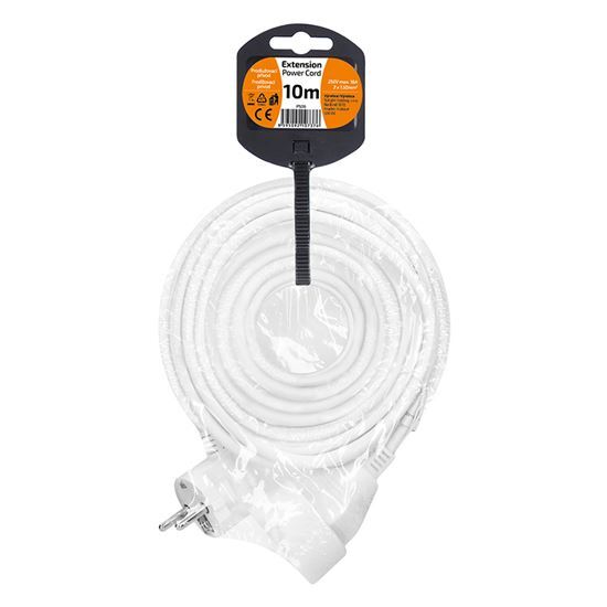 The compact white extension cable with a length of 10 meters and one socket is ideal for easily extending electrical power in the home, office or workshop. Suitable for connecting a separate device outside the reach of a fixed socket.