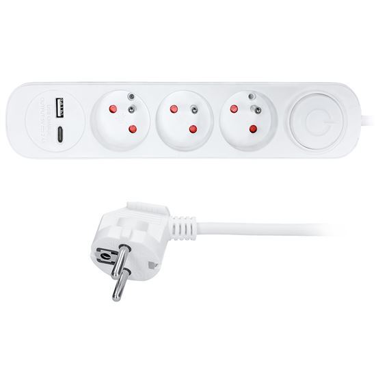 This extension strip with three sockets and an integrated USB charger is the ideal solution where you need to connect multiple devices and conveniently charge mobile electronics at the same time. A perfect choice for the living room, bedroom and office.