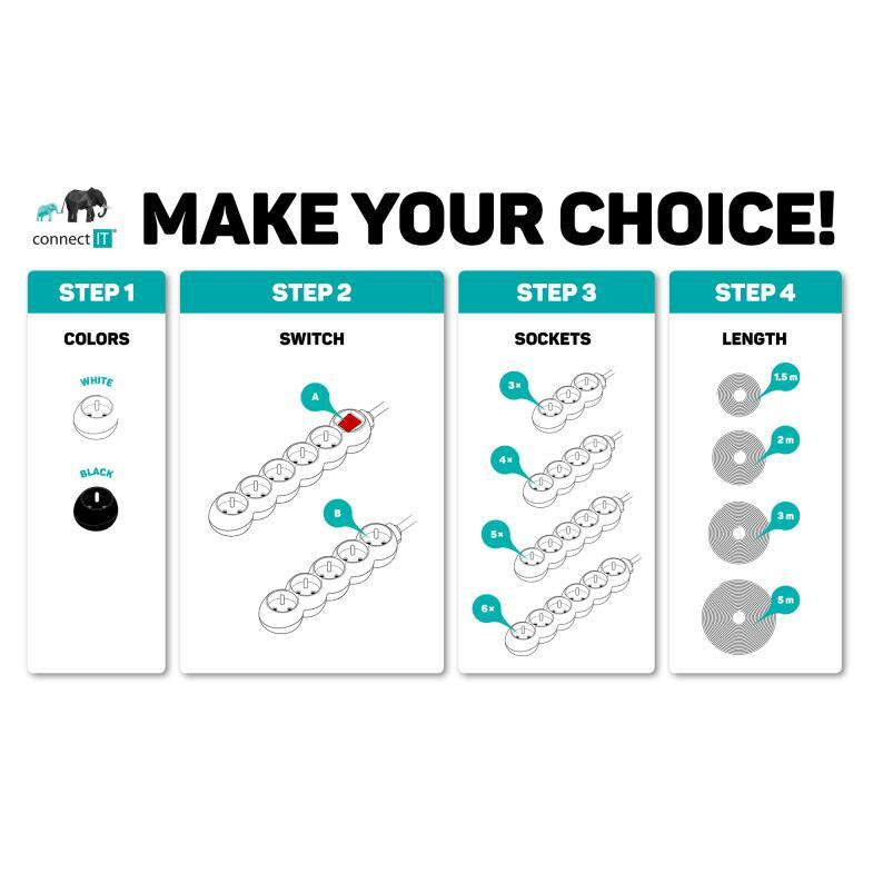 Predlžovací kábel Connect IT 6× zásuvka, 2 m, čierna. Príkon až 2500W. Tento kábel vám umožní zapojiť až 6 zariadení naraz. Predlžovacia zásuvka je vybavená detskou ochranou. Zásuvky sú prístupné iba v prípade zasunutia oboch vidlíc naraz, čo znamená, že vaše deti sú v bezpečí pred nebezpečnými elektrošokmi. Zásuvky sú navyše otočené o 45°, čo umožňuje použitie uhlových koncoviek alebo objemnejších napájacích adaptérov. A vďaka výsuvnému očku môžete predlžovací kábel pohodlne zavesiť napríklad na stenu.