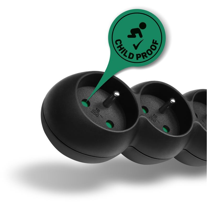 Revolučná detská ochrana na všetkých zásuvkách zabezpečuje, že sa zásuvky aktivujú len pri súčasnom zasunutí oboch vidlíc. Žiadne riziko úrazu od skrutkovačov, pletacích ihlíc či iných predmetov!